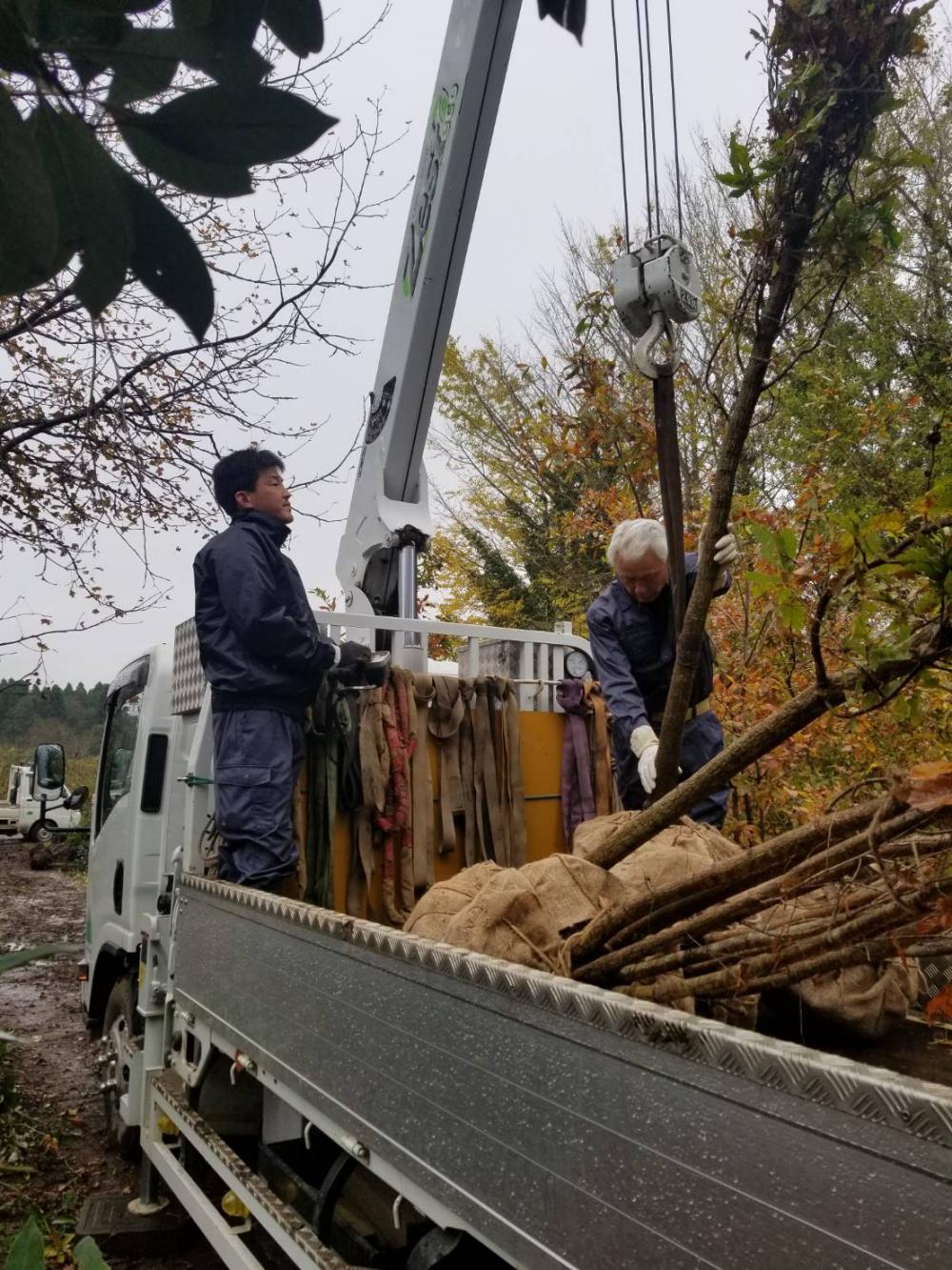 大きな植木はクレーンなどを使って掘り取り作業を行います。作業は1つ1つ丁寧に教えていきますし、慣れるまでは1人でやっていただくことはありませんのでご安心ください。